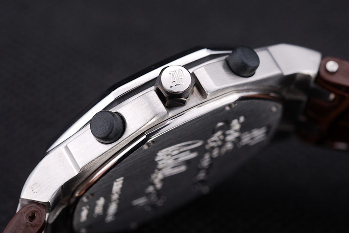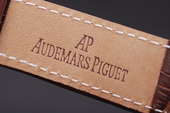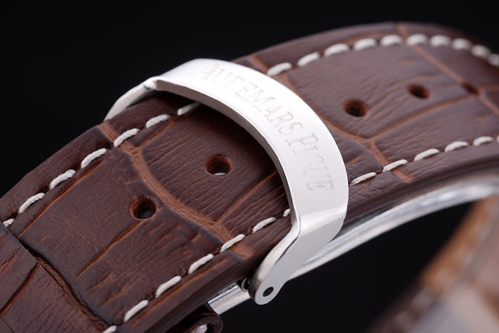 Armband: Dunkelbraun Krokodillederband mit weißen Fadenheftung und Wärme geprägt Audemars Piguet Name und das Logo und ein Audemars Piguet eingeschrieben Edelstahl Flip-über Haken clasp