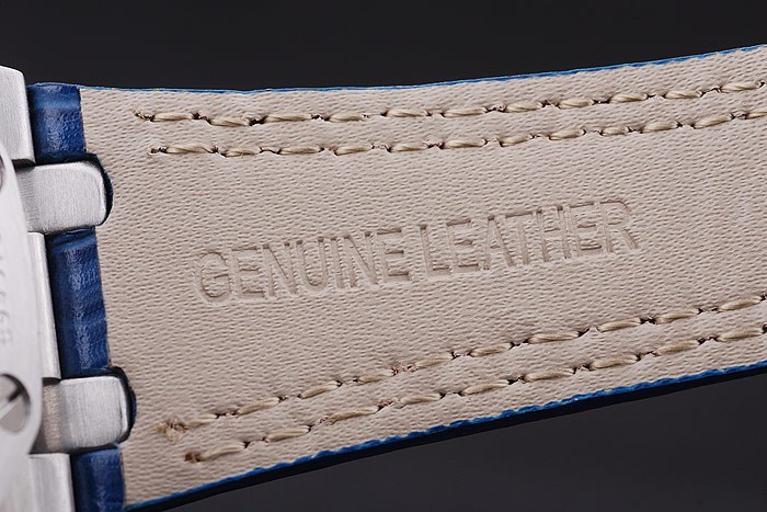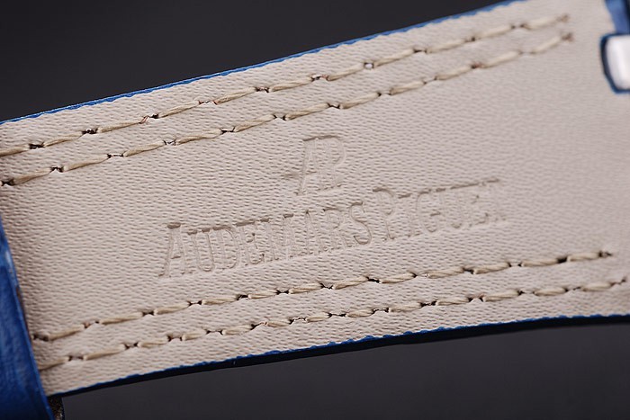 Armband: Blaues Krokodillederband mit Doppel-weißen Nähten und Wärme geprägt Audemars Piguet Name und das Logo und ein Audemars Piguet eingeschrieben Edelstahl Flip-über Haken clasp