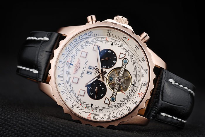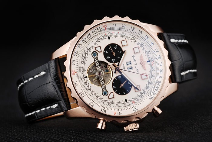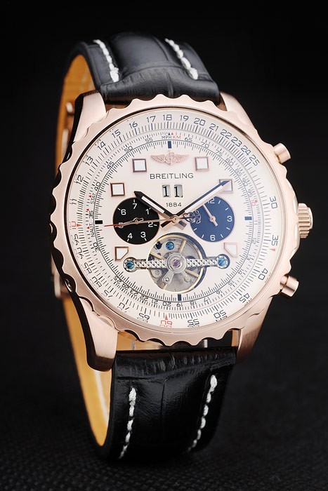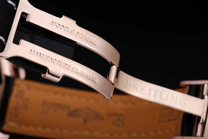 Armband: Hitze geprägt Breitling Name und das Logo schwarzes Krokodillederband mit weißen Faden stiching und Logogravur Rosen vergoldet klappbare in clasp