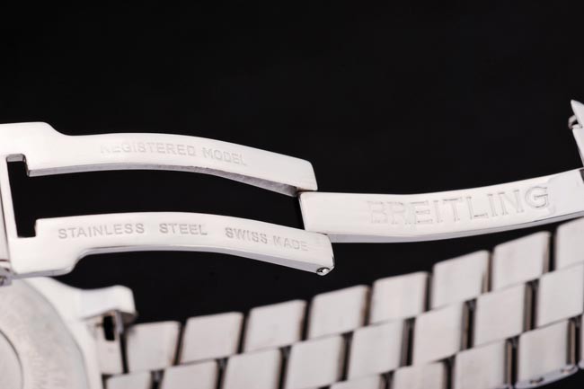 steel Schnallenverschluss mit dem Namen Breitling geprägt befestigt und logo.