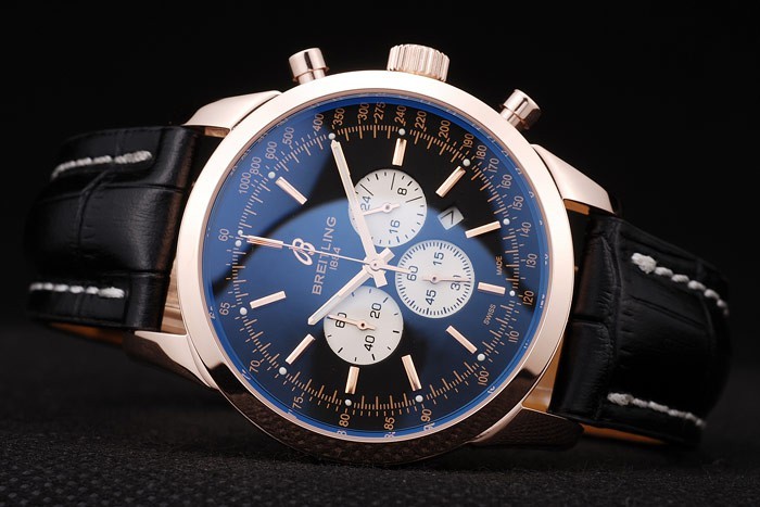 Armband: Hitze geprägt Breitling schwarz Krokodillederband mit weißen Fadenheftung und eine Breitling-logo eingraviert Einfalt-Rosen vergoldet clasp
