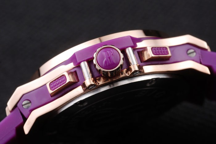 Krone: Cutwork rose-goldene Krone mit ‚H‘ Gravur und zwei rechteckige Druck Taste Kronen auf beiden Seiten, die alle mit lila Gummi trimmings