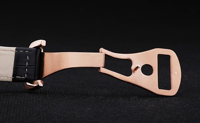 Armband: Schwarzes Krokodillederband mit weißen Nähten und Omega-Logo Gelbgold Haken-Schnalle clasp