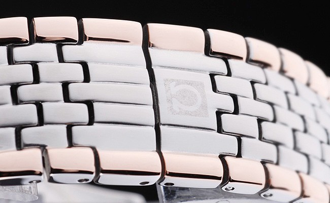 Armband: Gelb vergoldet und gebürstetem Edelstahl-Gliederarmband mit Omega logo graviert versteckt clasp