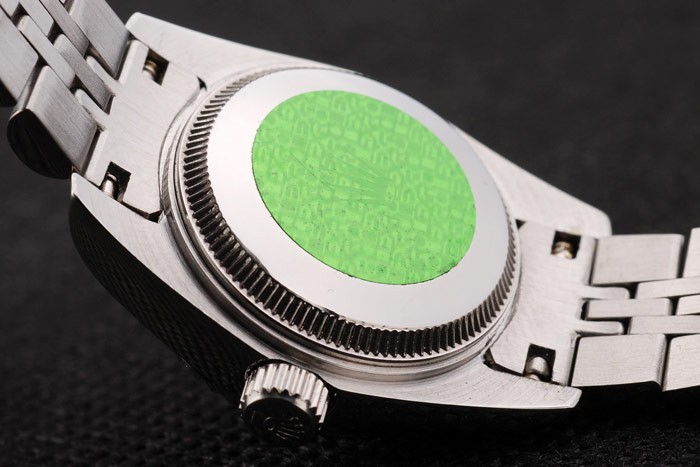 1Back: Push-in Edelstahl zurück mit grünen Rolex Aufkleber und markings