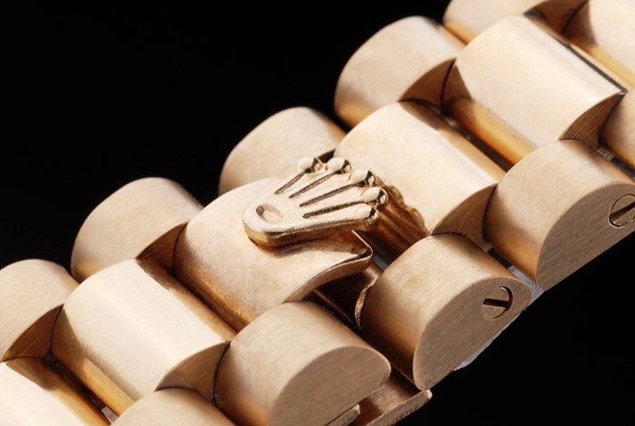 Armband plattiert: 18 Karat Gelbgold mit Rolex Edelstahl-Glieder Armband vergoldet Gravur versteckte Spange die Rolex logo