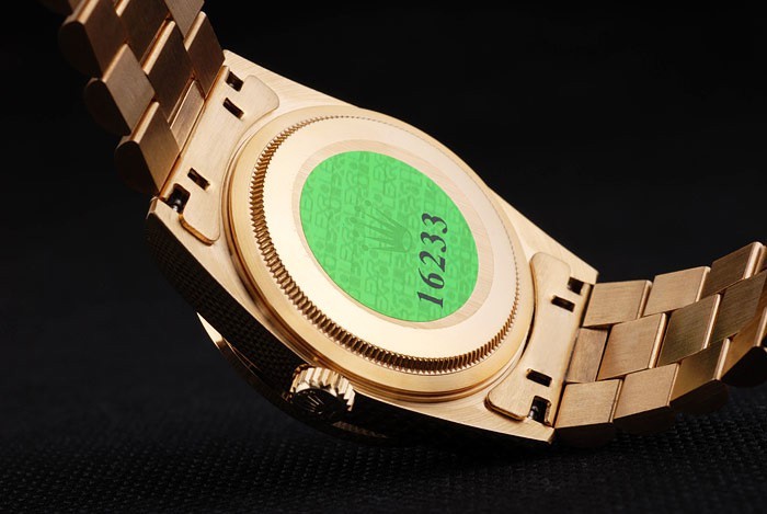 Zurück: 18K Gelbgold überzogenes Edelstahl-Steckgehäuseboden mit grünen Rolex-Logo stamp