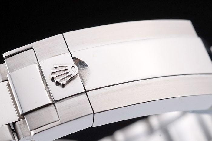 Back Bewegung: Push-in Edelstahl zurück mit grünen Rolex Aufkleber und markings