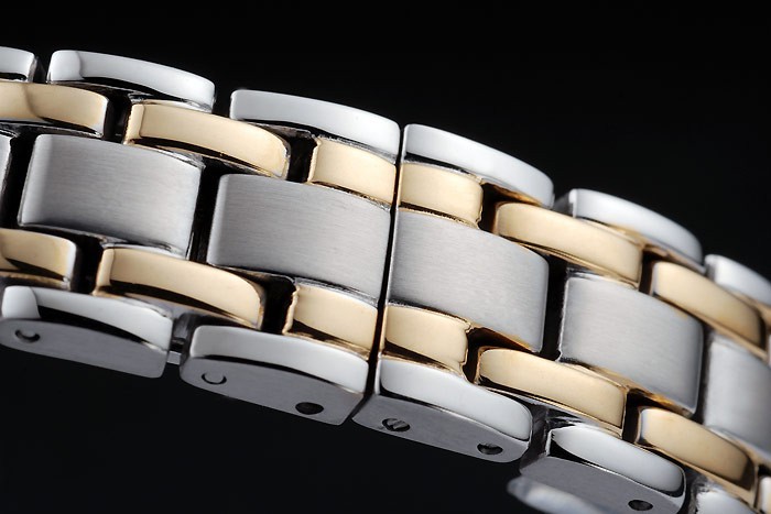 Armband: Zweifarbiges Edelstahlgliederarmband mit versteckten clasp