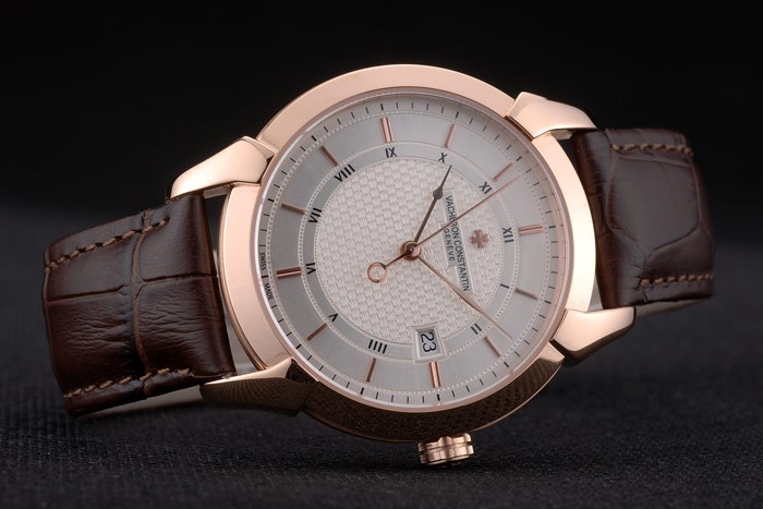 Armband: Hitze geprägt Vacheron Constantin Logo und braunen Krokodillederband mit 18k Rose- vergoldet logo Haken-Schnalle clasp