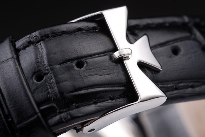 Armband: Schwarz Krokodillederband mit Wärme geprägt Vacheron Constantin Stempel und poliertem Edelstahl Vacheron Constantin logo Haken-Schnalle clasp