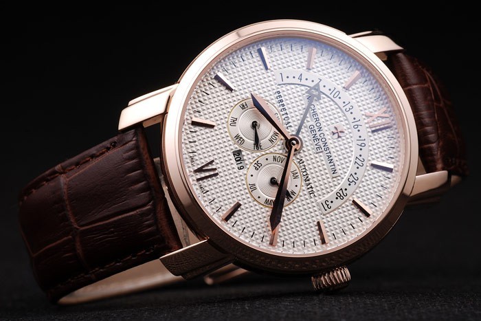 Armband: Brown Krokolederarmband mit Hitze Prägestempel Vacheron Constantin und Rose- vergoldet Vacheron Constantin logo Haken-Schnalle clasp